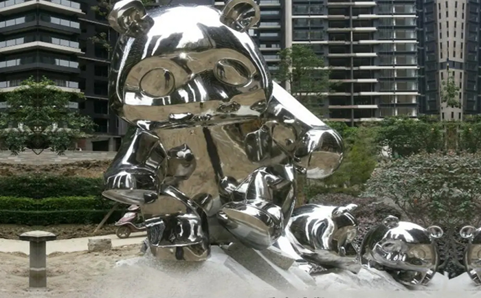 這座不銹鋼大熊貓雕塑,以國寶大熊貓的造型為創(chuàng)作,制造出了憨態(tài)可掬,造型獨(dú)特,外觀明亮的大熊貓雕塑。這座大熊貓雕塑惹人喜愛的外觀,使其無論放在哪里都將是目光的聚集點(diǎn)。 不銹鋼熊貓雕塑形象生動(dòng)逼真,加以使用高質(zhì)量不銹鋼為原材料,使其表面非常光滑,像鏡子一樣明亮。且不銹鋼雕塑又具有不易生銹、易清潔、經(jīng)久耐用的特性,在室外也不容易變形和褪色,非常適合放于室外做裝飾。