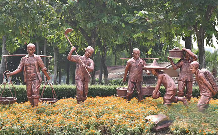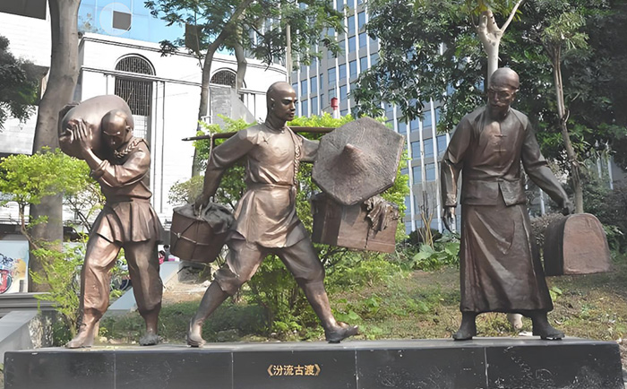 通過(guò)多人物組合再現(xiàn)市井畫卷,如《老長(zhǎng)沙》系列的補(bǔ)鍋匠與圍觀群眾9,讓游客沉浸式感受城市歷史。